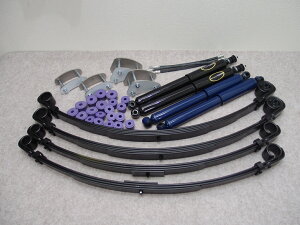 3インチスプリング、ロングショック、カーボンブッシュ、20mmロングシャックル、ロングブレーキホースのセットです。業販などお問い合わせ 0774-43-7408黒川まで車検用の強度計算書付き