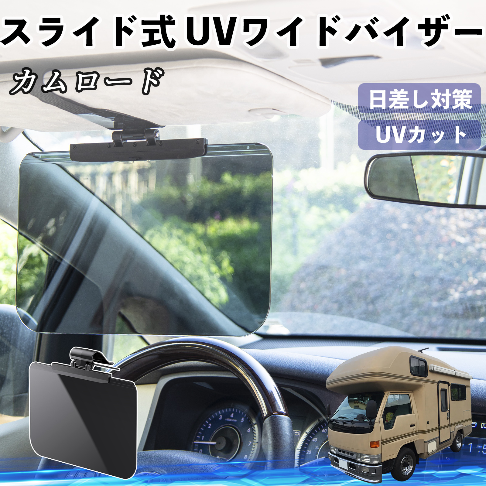 【適合車種】 カムロード 【セット内容】 UVワイドバイザー×1 【大型スクリーンで直射日光を遮断】 まぶしい朝日や西日、対向車のライトをしっかり...