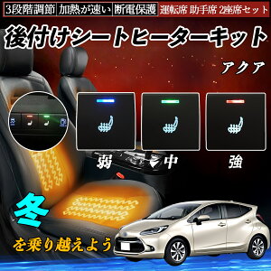 商品説明 適合車種アクア MXPK10 11 15 16 R3.7- セット内容ヒーターパッド×4枚 スイッチ×2 ヒーターパッド止め具 商品の特徴 取り付け可能トヨタやダイハツなど、縦22mm×横22mmのブランクスイッチ2つで取り...