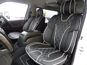 成形硬質ウレタンをインストールした 今までシートカバーにないホールド感を与えてくれる200系ハイエース専用シートカバーです。 パンチングレザーとパイピングにより高級感を演出し、<b...