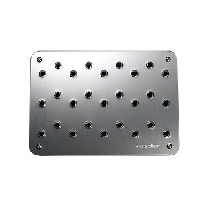 お使いのフロアマットに、ボルト、ナットで簡単に取付けが可能です。 ペダル操作時、ヒールによる磨耗からフロアマットを守ります。2mm厚のアルミ材にバーリング加工を施し、強度の保持とヒールのグリップ確保を実現しました。 コクピ