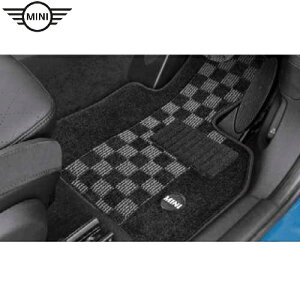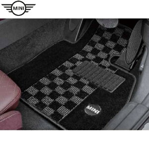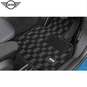 【適合車種】 3ドアハッチバック:R56 右ハンドル車用 フロントとリヤのセット 密度の高い最高級シャギー調カーペット。 黒色と灰色のチェック柄のフロア・マットです。 "MINI"のロゴマーク入り