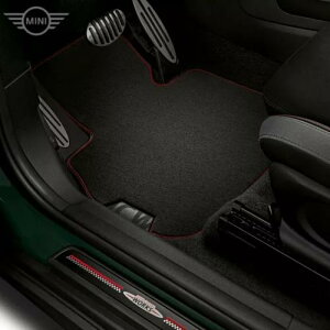【適合車種】 クラブマン:F54 ※フロント左右セット ブラックとチリ・レッドのコントラスト・カラーのクールなデザイン。 ベロア素材を採用し、ドライバーのヒールをいたわり、お手入れも簡単です。 JCWワードマーク入り。 ※写真のため