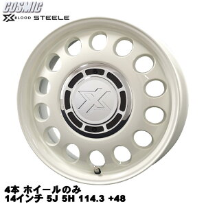 商品名 :クロスブラッド スティール。カラー:ミスティックホワイト。インチ:14インチ。J数 :5J。INSET :48。HOLE数:5。PCD:114.3。ハブ径:60.1。