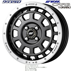 メーカー:WORK ワーク 商品名 :CRAG T-GRABIC クラッグ ティー・グラビック サイズ :15インチ 5J +45 ホール数:4 PCD:100 カラー :マットカーボンカットリム(MGMRC) 本...