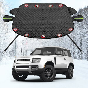 車フロントガラス 凍結防止シート に適用ランドローバー ディフェンダー 90/110 カーフロントカバー 五重厚手 内蔵9枚強力磁石防風 盗難防止挟み耳 鏡保護 夜間警告 霜よけ 落葉 雪対策 防塵 防氷...