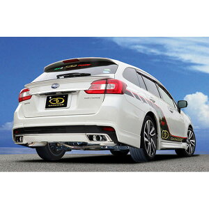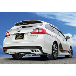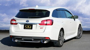 ■純正オプションリヤバンパースカート用に専用設計されたレヴォーグ2.0用センターパイプ付マフラー。■テール部を1本1本丁寧に磨き上げたオールステンレス製マフラー。■バンパースカートの奥から光沢を放つサークルテールの左右出し