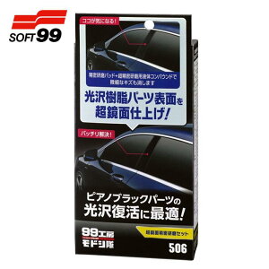 ソフト99 99工房モドシ隊 超鏡面精密研磨セット 09506。自動車のピラーや光沢樹脂パーツのピアノブラック塗装の表面に付いた細かなキズを磨いて消す研磨セット。