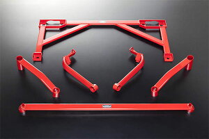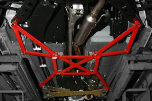 ロアアームバーの進化版。ボディフロアに3次元トラス構造のスチール製フレームを装着することで、ボルトオンパーツとしては最大レベルのシャシー剛性を獲得。ボディ上部前後を補強するタワーブレースとの組み合わせで上下2段構えの強