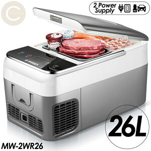 たっぷり26L容量でアウトドアでもおウチでも大活躍の 車載&家庭兼用「ポータブル冷蔵庫 MW-2WR26」です。 ◎たっぷり入る大容量26Lの車載冷蔵庫。 ◎2Lペットボトルなら6本、500mlなら15本...