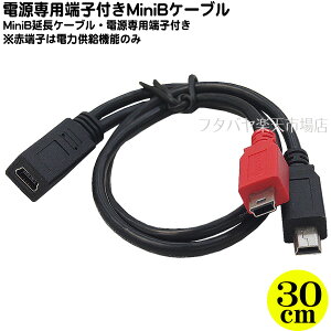 Mini B 5pin端子を電力&データ通信端子と電力供給専用端子に分岐する延長ケーブル ●Mini B 5pin端子(メス)側よりMini B 5pin黒端子へ延長します。Mini B 5pin赤端子は電力供給端子のみ結線されてお...