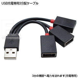 電力供給専用ケーブル USB A端子電力供給専用3分配ケーブル オス端子側をUSB充電器やモバイルバッテリーに接続しメス端子側に電力が必要な小型電気機器を接続します。 メス側3系統の端子へ電力を供給いたします。 ※メス側端子を同時に接