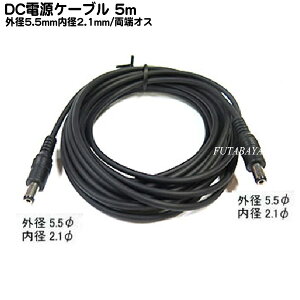 外径5.5mm内径2.1mmDC電源コード DC機器への電源供給用として長めの5mケーブル ※5v/1A以内でご使用ください。 外径5.5mm内径2.1mm(オス)-外径5.5mm内径2.1mm(オス) 商品名 5521-50...