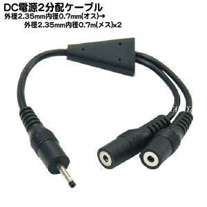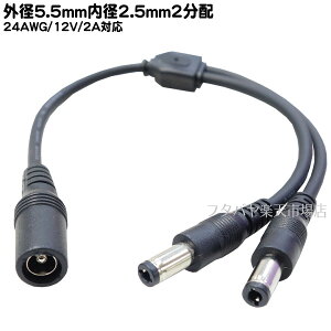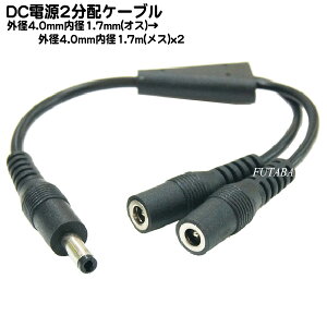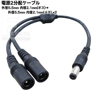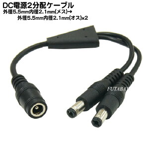 DC電源2分配ケーブル 一つの電力を2つの機器で使う事が可能です。 ※接続時の電力容量には十分ご注意ください。 (電力が大きすぎる場合は機器を破損する場合がございます。 また小さすぎる場合は充電や動作ができません。) ※DC端子は