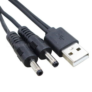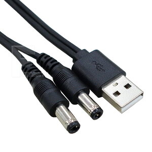 USB→DC電源2分配ケーブル パソコンやUSB充電器 モバイルバッテリーからの電力をDC端子に変換、2つのケーブルへ分配いたします。 電力対応 5v 2Aまで DC端子接続の機器、同時使用時には電圧が低下いたしますので電力容量には十...