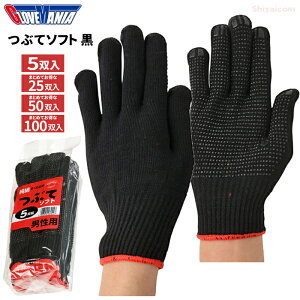 この商品のポイント 汚れが目立ちにくい黒色手袋です。 ●綿100%なので肌触りが良く、吸汗性に優れているのでムレにくいです。 ●手の平部分にスベリ止め加工を施しているので、細かな作業にも最適です。 ●黒色の手袋を使用し、汚れが