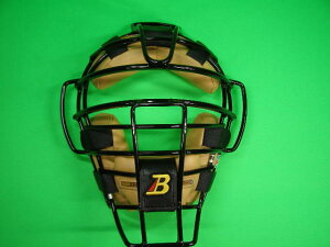 発声のしやすい W型パッド採用、人気の審判用マスクです。 マスクの目幅は約3.6cm、軟式野球用のマスクです。 ブラックフレーム×ブラックパッドBマークゴールドです。 全日本軟式野球連盟 JSBB公認マークが付きます...
