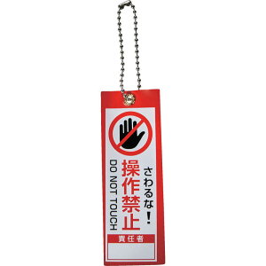 【商品解説】特長●機械や注意喚起したい場所への設置が可能です。用途仕様●表示内容:さわるな!/操作禁止●縦(mm):100●横(mm):35●取付方法:ボールチェーン(付属)●チェーンサイズφ2.3mm×全長150mm●穴径:φ4mm...