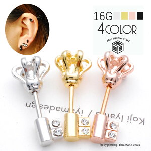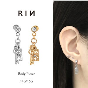 ボディピアス 14G 軟骨 ピアス 16G 可愛い 鍵 王冠 ボディーピアス ストレートバーベル ステンレス 銀 金 黒 カギ キー かわいい 耳たぶ 軟骨用 ネジ式 アクセサリー 凛 ボディピアス専門店...