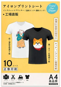 TransOurDream 真正の転写シート アイロンプリントシート 黒?濃色生地用 A4 10枚 転写紙 インクジェット&レーザープリンタ兼用Tシャツ転写シート 熱転写シート SKU:JP-B-3-10 ...