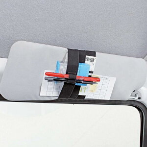 ●サンバイザー取付 ●サンバイザーを小物の収納場所として有効活用できるバンドです。 ●3本のストレッチバンドで自由に簡単に小物を固定できます。ペン等を差し込めるペンホルダー付き。 ●取り付け簡単、サンバイザーに面ファスナー