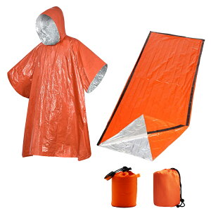 【仕様&材質】 サイズ:ポンチョ(130x100cm)、シュラフ (210x90cm) 重さ:合計約200g 材質:PE 【快適なデザイン】 ポンチョタイプのアルミフィルムなので両手が自由に使えたり、屋外の断熱用ブランケットとしてもお...