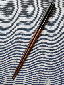 お箸の手で握る部分に輪島塗を施している八角箸です。 シンプルですが、とても上品なお箸です。 また、丸に近い八角面を持つこのお箸は、持つ指に違和感を与えず、柔らかい使い心地は幅広い人に人気です。 長さ:約21.5cm材質:鉄木(