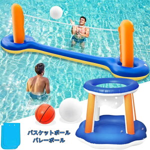 【3-in-1の遊びが楽しめるお得なプールゲームセット】プールバレーボールネット×1、プールバスケットゴール×1、ウォーターバレーボール×1、プールバスケットボール×1、おもり袋×2になった充実の水遊びセットです。4歳〜12歳のお子様から