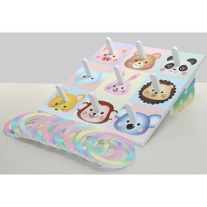 5種類のかわいい動物がリングになったわなげです。割れにくい木