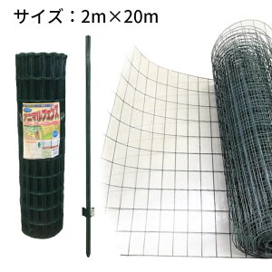アニマルフェンスです。 フェンス(金網)と支柱がセットになっています。 フェンスサイズ:高さ1m×長さ20m 支柱:長さ145cm (11本) 網目:横5cm×縦10cm 素材:鉄(PVCコートでサビに強い) 猪用柵・畑の柵・池の柵・...