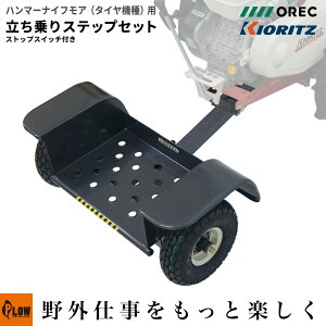 草刈りクルージング。 「1度使ったら歩行作業には戻れない」不整地の歩行からあなたを解放する、タイヤ仕様のハンマーナイフモア専用 立ち乗りステップ。 意外と疲れるデコボコした地面をひたすら歩く草刈り作