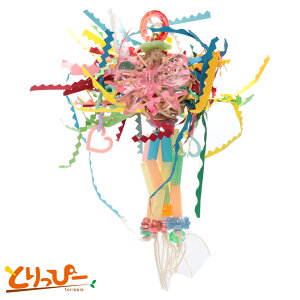小鳥たちの安全を考えて作られた楽しい手作りおもちゃ カラフルな紙やラタンで包まれたビーズが、かじると出てくるくす玉のようなおもちゃです。かじって遊ぶのが好きな小鳥にオススメ 金属はすべてステンレスのため、かじったり舐め