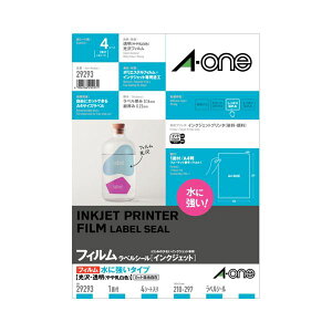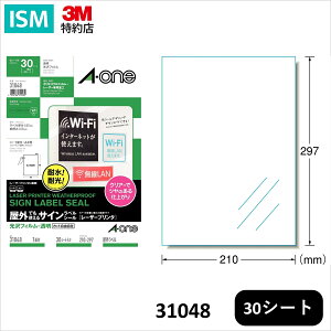 エーワン A-ONE 31048 屋外でも使えるサインラベルシール 光沢フィルム・透明 A4 ノーカット ◆入数:30シート ◆シートサイズ:A4判 (210×297mm) ◆一片サイズ:210mm×297mm ◆面付:1面 1列×1...