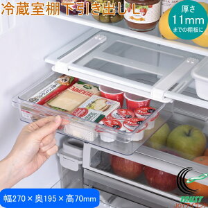棚板に取り付けて棚下スペースを有効活用! 厚さ11mmまでの棚板に使えます。 バターやチーズなどがサッと取り出せる引き出し式。 【サイズ】 (約)幅270×奥行195×...