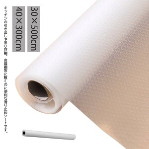 キッチンの引き出しや吊り戸棚、食器棚等に敷くのに便利な滑り止めシートです。 30×500cm 40×300cm食器棚の棚板に敷くだけで、消臭・抗菌・防カビが期待できる食器棚シートです。ズレにくい素材のEVA樹脂製でスッキリ敷けます...