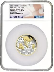 2024 Perth Mint 125th Anniversary 2oz $2 Silver NGC PF-70 UCAM FDOI Gilt Gilded商品について販売者のコメント「ミント製の新品」構成シルバー認証番号は異なりま...