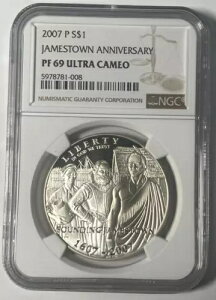 2007 Jamestown Silver Dollar Proof - NGC PF 69 DCAM US Mint Commemorative商品について構成:モダンシルバー/クラッド認証番号:5978781-008刻印タイプ:プ...
