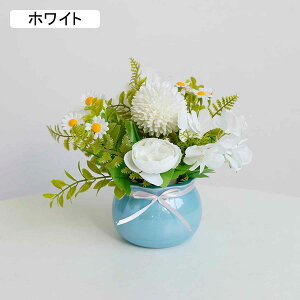 Villa Como 造花 菊 デイジー ジニア アートフラワー 枯れない花 仏花 お供え 鉢植え インテリア 百日草 フェイクグリーン 卓上 おしゃれ リビング 玄関 オフィス 母の日 (白い) 【...