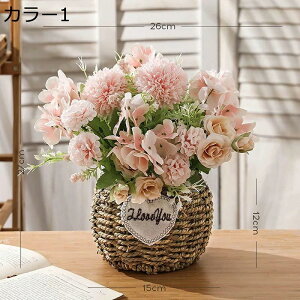 のバスケットに、贅沢にお花を盛り込んだ、ボリュームたっぷりのアレンジ。 ◆◇2●□:【自然な外観】造花ですが、生け花ような雰囲気、自然な外観を持っている。 手作りで鮮やかな色合いのリアルタッチ。日頃の感謝の気持ちを込めて...