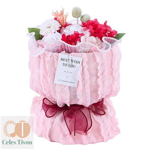 色とりどりのカーネーションの花束をかたどったフラワーギフト。 花びらの部分は石鹸でできていて、 飾るだけでほんのりとした香りを楽しめます。 贈り物におすすめのアイテムです。 ソープフラワーはお手入れ不要で...