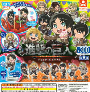 ●この商品のラインナップを全て見る ▼この商品は【アルミン・アルレルト】のみです。 「進撃の巨人」のデコラPICが登場! 専用スタンドで飾れる、ボールチェーンで持ち運べる他にも、ポイントポール部分を爪楊枝に付け替えれば...