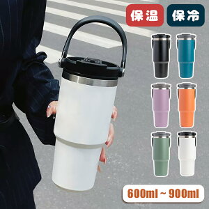 保冷 蓋付き タンブラー ストロー付き 600ml 750ml 900ml 水筒 直飲み ストロー飲み ステンレスタンブラー 大容量 ウォーターボトル 持ち運び 漏れ防止 ステンレスボトル ビール マグボトル...