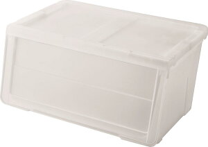 収納物の出し入れがしやすいフラップ式収納ボックス カバコ ワイドM 完成品 場所を選ばないデザインの収納ケース フラップ扉 衣装ケース 収納しているものが把握できる半透明のクリアカラー プラ