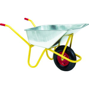 土木、建設工事用深型一輪車。日本製。 ●土木、建設作業用の深型一輪車です。 ●モルタル、解体ガラなどの運搬に最適です。 ●バケット(皿)は亜鉛メッキを施しており、サビに強い仕様になっています。 ●積載荷重:約100kg(環境によ
