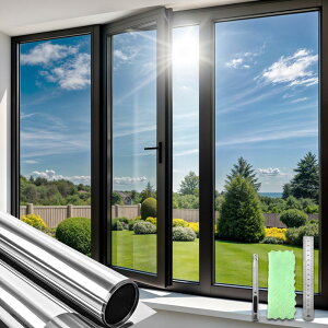 【マジックミラー効果・プライバシー保護】自然光を室内に取り入れつつ、外部からの視線を遮り、プライバシーを守ります。昼間は鏡のように反射し、優れた目隠し機能を持ちますが、室内からは透明な紺色のシートとして外の景色を楽し