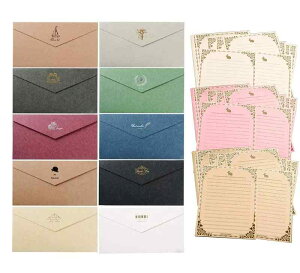 【セット内容】 10色封筒と、便箋30枚(3色), 大量 とってもお得なセット封筒サイズ22*11cm, 便箋サイズ:14.5*21cm 。【高品質】便箋封筒セット紙表面は独特な質感があります。背中の金文字パターンは高級感であり...