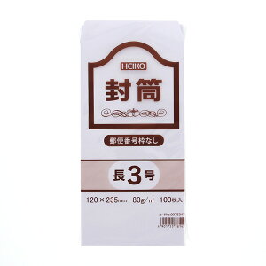 HEIKO(ヘイコー)の一覧はこちら■材質:ケント紙80g■事務用の白いケント封筒です。郵便番号枠なしタイプです。定形の長3規格。A4横三ツ折・大形便箋縦二ツ折・国際判便箋横三ツ折などに。■入数:100枚■サイズ:幅120×高23...