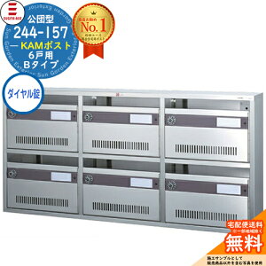 メーカー:杉田エース品番:244-157品名:アパート用 ポストダイヤル錠 KAMポスト Bタイプ 6戸用 2段3列商品番号:244-1572段3列サイズ:H500mm、W1026mm、D150mm本体重...