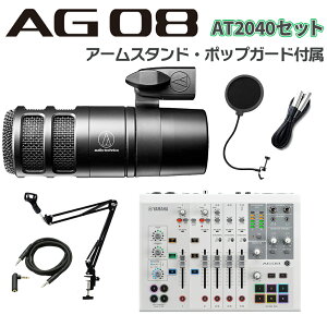配信用ミキサー型インターフェースAG08とマイクのセットです!【特徴】[セット内容]・YAMAHA AG08 ×1・ダイナミックマイク audio-technica AT2040×1・マイクケーブル・アーム型マイクスタンド...