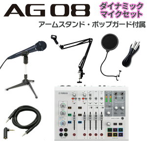 配信用ミキサー型インターフェースAG08とマイクのセットです!【特徴】[セット内容]・YAMAHA AG08 ×1・ダイナミックマイク ×1・マイクケーブル・アーム型マイクスタンド・卓上マイクスタンド...